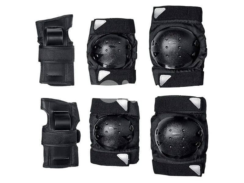 6 pieces: 2 x palm protectors, 2 x elbow pads, 2 x knee pads