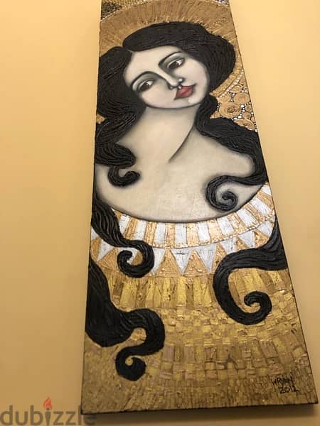 Painting by Wendy Ryan, mixed media, 30cm x 90cm. The artist was influenced by her stay in Lebanon, during which time she visited many historic Byzantine churches and drew inspiration from them in her work