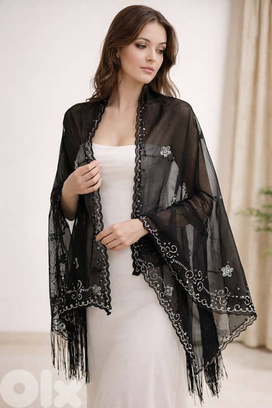 Black Shawl with Gold Embroidery – Elegant & Chic