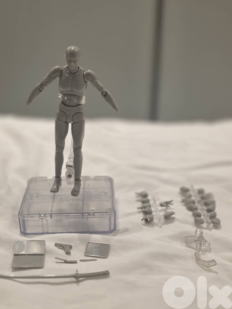 1x Articulated Figure: Grey color, realistic proportions.