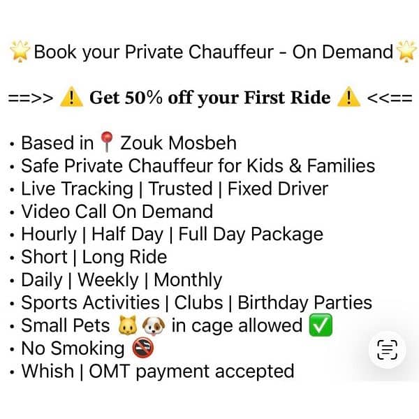 Book your Private Chauffeur - On Demand - based in Zouk Mosbeh If you are interested send us your number to contact you asap