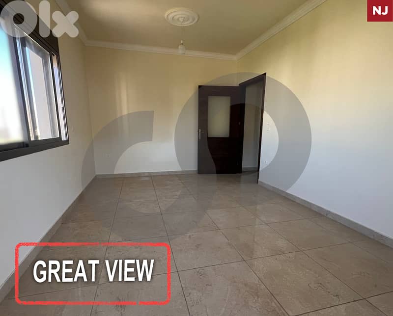 This brand new 120 sqm apartment in Zahle offers modern living in a newly constructed building, with stunning views and a spacious layout it presents a great opportunity. Large windows flood the space with natural light, the apartment's stylish design high end finishing with elegant touches. Includes a terrace with space of 80sqm. This is an excellent value for those seeking a blend of luxury and affordability.