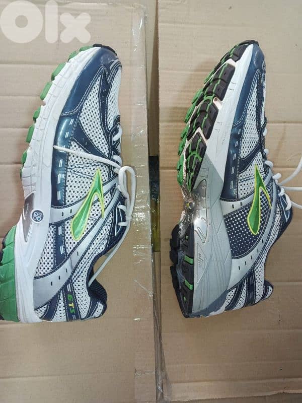 Brooks shoes, original brand, size 48.5, excellent condition, color navy blue, green and white.