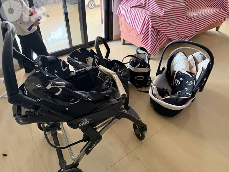 - Stroller frame - Carrycot (bassinet) - Infant car seat - Matching diaper bag (used) items can be assembled together or dissembled very good condition