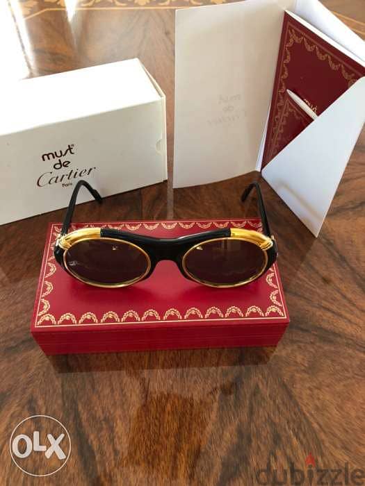 Authentic Cartier vintage “ Diabolo” black and 24K gold round sunglasses with all its original papers, guarantee and box. Mint condition , Still like new !!! For serious byers and in Cash only !!