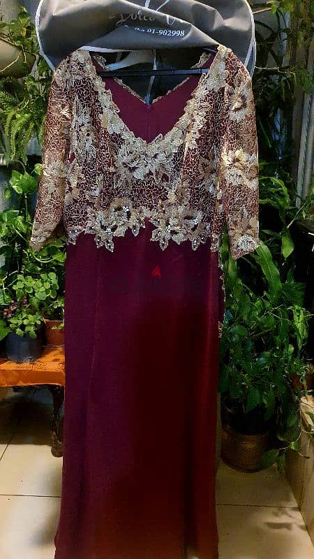 فستان سهرة كلاسيكي بلون البورضو الراقي مرصع Swarovski مستعمل مرة واحدة size xxl
