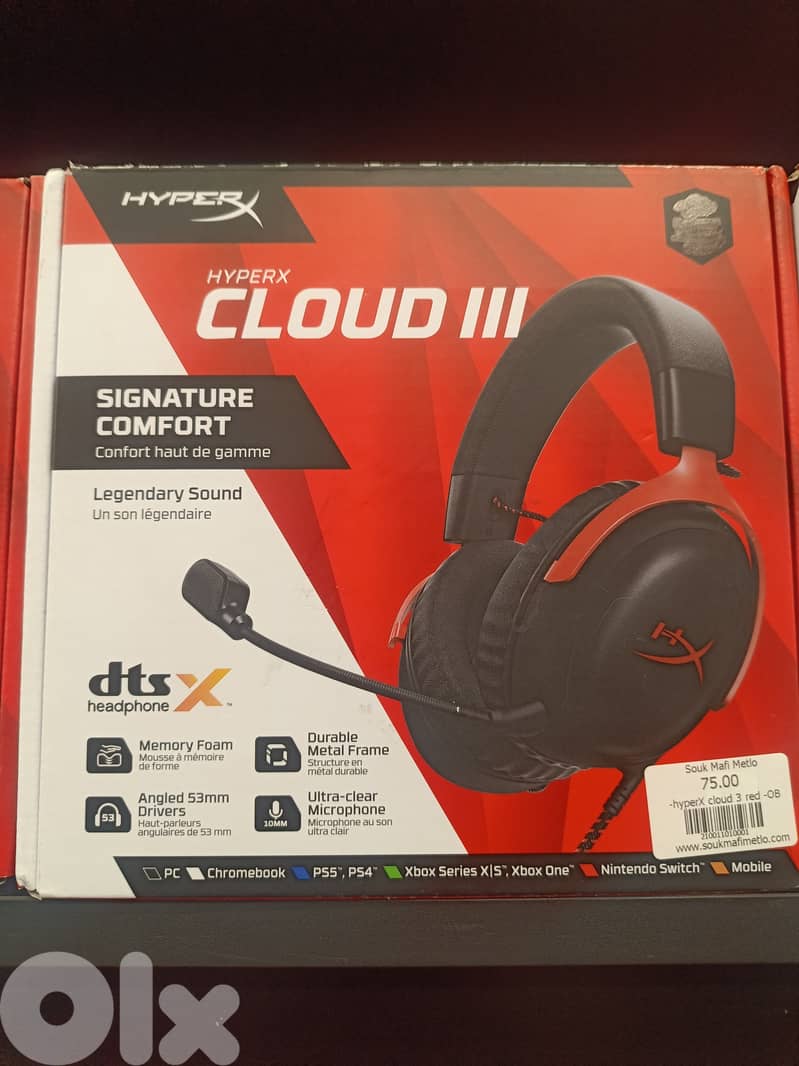 سماعة ألعاب HyperX Cloud III بتصميم مريح عالي الجودة مع محركات 53 مم لصوت واضح وغامر ، ميكروفون قابل للفصل مع إلغاء الضوضاء وتوافق واسع مع الكمبيوتر، بلايستيشن، إكس بوكس، نينتندو وأجهزة الموبايل . ممتازة للّعب الطويل والبث والتواصل الصوتي مع الفريق.