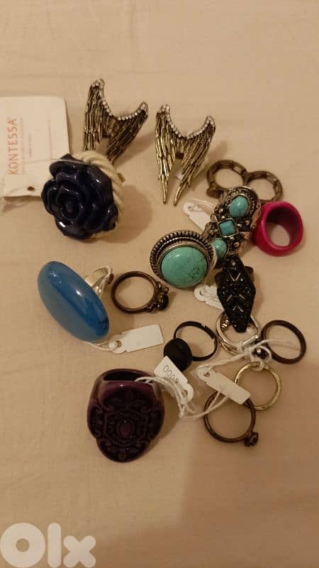 several rings with different shapes and colors