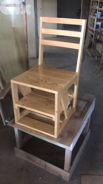 Solid Wooden Chair Convertible into ledder made by our factory located in zgharta available on wood for 75us. Painted price depends on color client option. Price for painted chair depends on client color option . All Prices excluding transportation. For any other information please don t hesitate to whatsapp me on 03 352004.