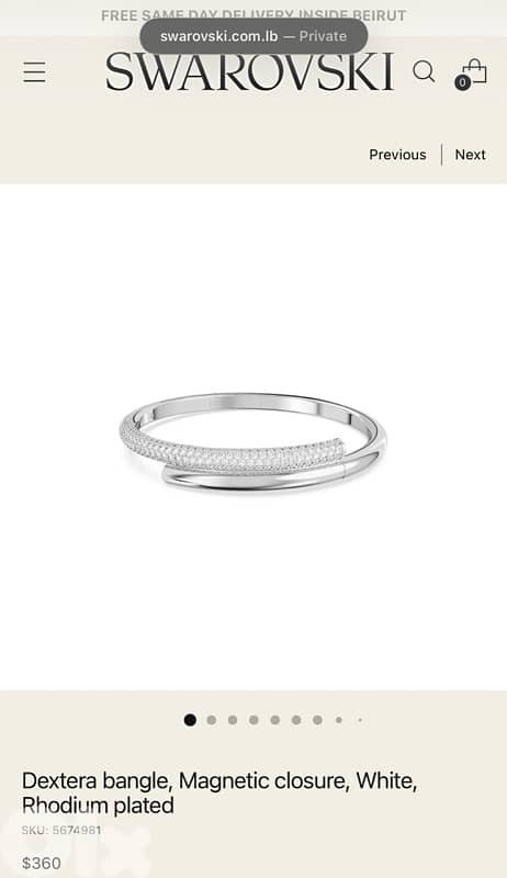 Dextera bangle, Magnetic closure, White, Rhodium plated. Never been worn