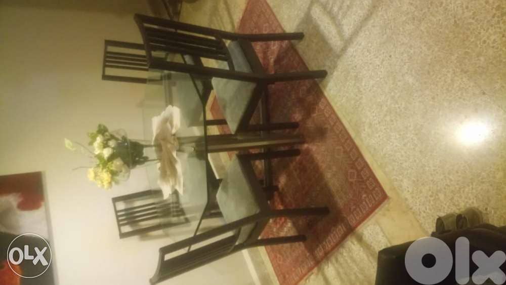 Dining table metal and glass made in France with 4 chairs excellent condition - payment in USD or equivalent.