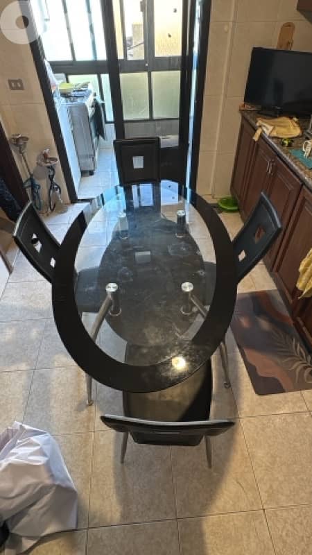 Glass dinning table with 4 chairs in very good condition