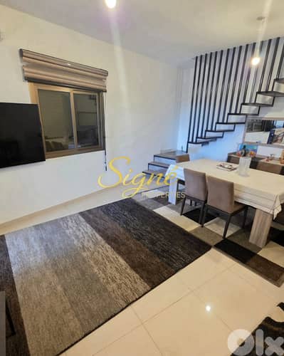 Signé Properties presents this 186 sqm duplex for sale in Mrouj, featuring a spacious 145 sqm roof terrace and beautiful mountain views in a peaceful residential area.