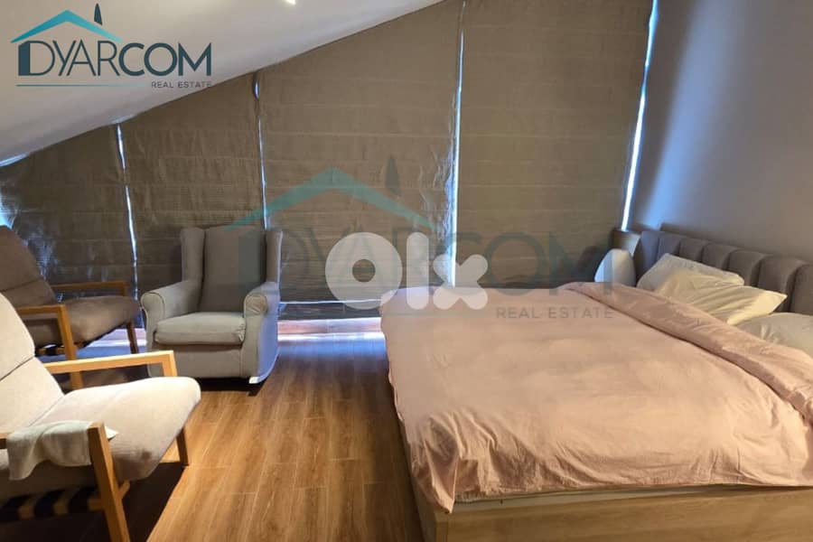 This fully furnished duplex chalet is located on the 2nd floor of a new gated community project in Kfardebian, Tilal el Asal that offers a panoramic mountain view. It has a living area of 180 sqm consisting of a master bedroom, 2 regular bedrooms, 3 bathrooms, 2 reception areas, a kitchen, a maid’s room, and a balcony. Amenities include 2 parking spaces, heating system, a storage room, a fireplace, security, and concierge services.