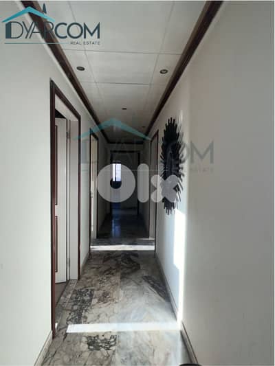 This apartment is located on the 1st floor of a 14-year-old, well-maintained building in Jamhour. It has a living area of 180 sqm consisting of a master bedroom, 2 regular bedrooms, 3 bathrooms, 2 reception areas, a kitchen, and 3 balconies. The apartment has its parking space.