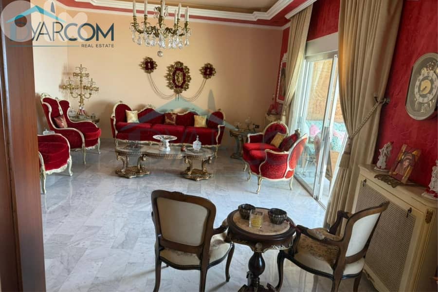 This fully furnished apartment is located on the 5th floor of 20-year-old building in Kfaryassine that offers an amazing sea view. It has a living area of 225 sqm consisting of a master bedroom, 2 regular bedrooms, 3 bathrooms, 2 reception areas, a kitchen, and 3 balconies. It has 2 parking spaces.