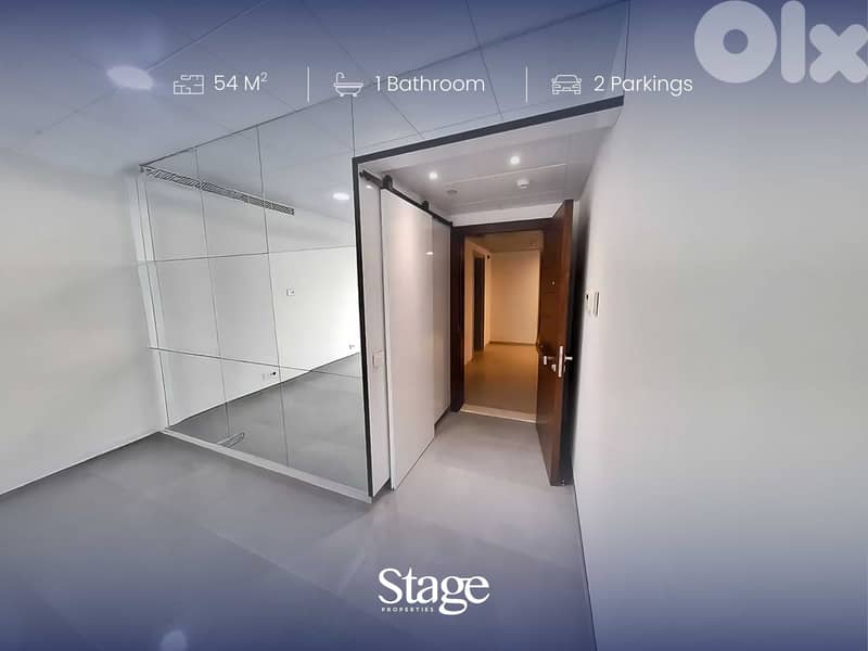 Remarks: This 54 sqm office space is located in a high-end, high-traffic, and secured tower in the Dekwaneh area. The unit includes a private bathroom and a kitchenette, along with two parking spaces. Its strategic location and professional setting make it ideal for professionals or medical practitioners, especially dentists, looking for a well-maintained office in Metn.