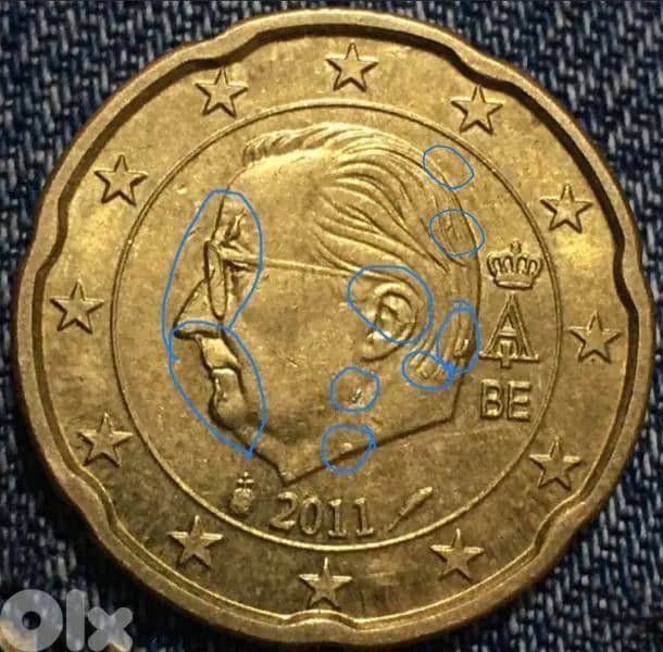 ٢٠ يورو سنت بلجيكا بها اخطاء سك متعددة عملة عملات معدنية ورقية coins