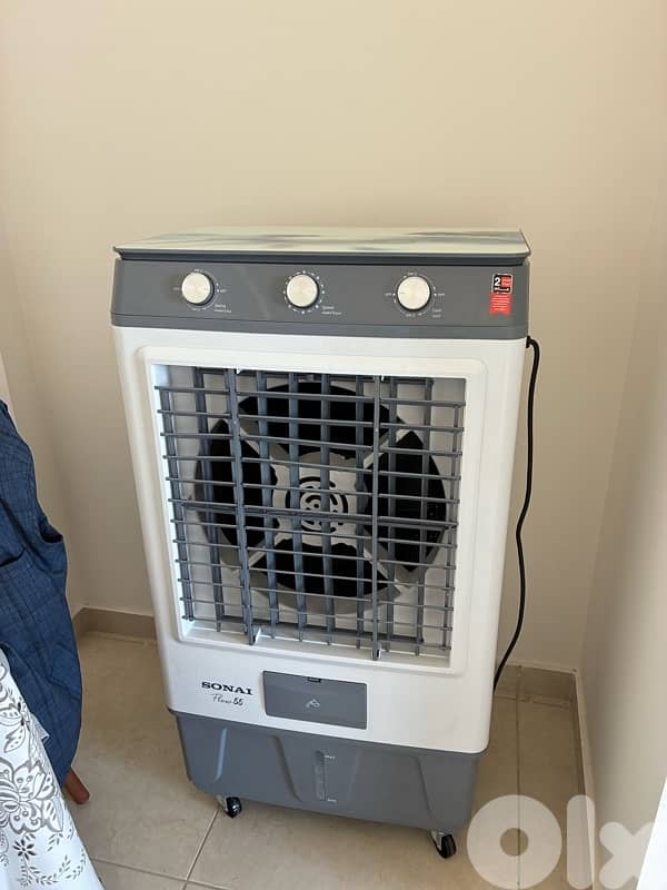 fan cooler that u can put water or ice to refresh the room .
