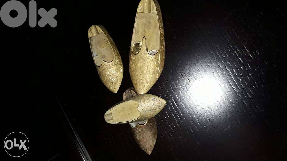 بابوج عثماني نحاس مية بلمية عمرن اكثر من مية سنة . . ٤ قطع ما في غيرن ثمنهم غير قابل للجدل . القياس كبير ١٤سنتم . وسط ١١ سنتم ٢صغير قياس ٩ سنتم تقريبا . كلن 50 $ اربع قطع