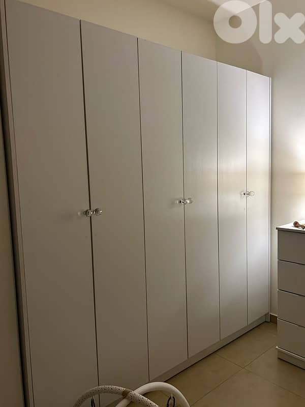 the bedroom is in excellent condition!! used like new!! 2 wardrobes one sofa bed open box! comode