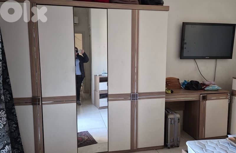 double bed,1 dresser,1 desk, 1 closet (5 partitions ), 1 mirror