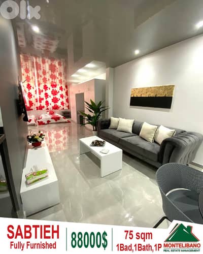 Fully Furnished 75 sqm Apartment For Sale in Sabtieh with 50 sqm Terrace and Solar System (8 Solar Panels / 8 Batteries)