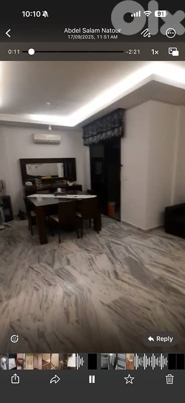 I am the owner of the apartment. It is a cozy and economical apartment with low heating costs in winter and good-quality amenities. Electricity is available from 6:00 pm to 8:00 am due to the proximity to the prison. The apartment is located in Bir Ortwezeh and includes a large storage room, ideal for carpets.