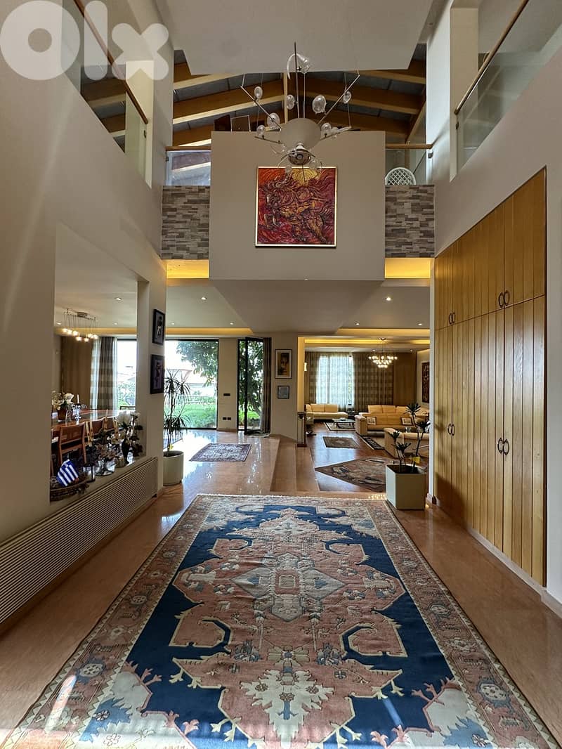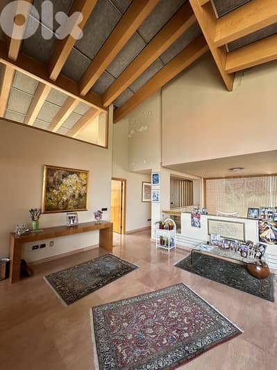 Exceptional offering of a privately gated 3 floor villa with 2 entrances, a sloped roof and a surrounding lush garden nestled in a tranquil KORNET CHEHWAN setting. Spans over 800 sqm furnished living area surrounded by 275 sqm lush garden on 900 sqm land. Provides great architecture, premium quality construction material, outstanding specs and supreme finishes and boasts tastefully decorated & artfully designed interior. Captures breathtaking views of greenery & sea. Connected with an exquisitely crafted staircase, the interior shows a high ceiling large entrance hall, 3 master bedrooms (1 suite), 2 guest toilets, common toilet, 2 expansive salons, dining room, living room, guest apartment including kitchenette & bathroom, eat-in gourmet kitchen, laundry area, maid’s room with bathroom and storage room. Available 5 parking spots. Equipped with Heating system, AC split units and several amenities of great value including marble & real wood parquet floors, 2 chimneys, bar, jacuzzi, floor-to-ceiling & arched glass windows, gypsum ceiling, lighting, video phone, double wall, double glazed windows, stone cladding. Concierge & Gardener services available.