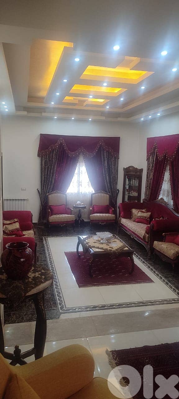 Taanayel fully furnished villa consisting of two floors 310 sqm three mastr bedrooms five bathrooms living dining salon fully equipped kitchen heating and chimeny installed split A/C units private pool , it is offered for rent for 15000 $ per year .