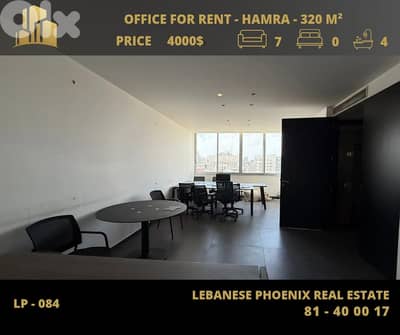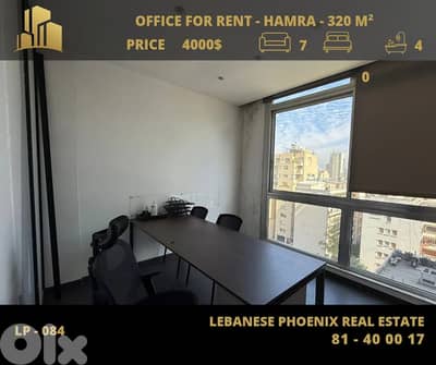 Fully Newly Furnished Office for Rent , in Hamra (Ras Beirut-Sanayeh) with city view.