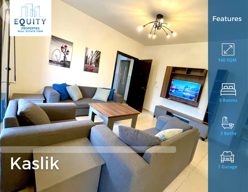 هذه الشقة 160 متر مربع شرفة مع أقسام كبيرة للإيجار في الكسليك! هذه الخاصية جديدة يتم صيانتها بشكل جيد وهي مناسبة للسكن.