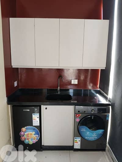 ستوديو مفروشة مع مطبخ و حمام و بلكون منظر بحر