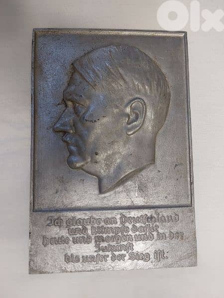 German Nazi Adolf Hitler bust Alminium Plaque Portrait dimensions 32cm x 21 cm written on it the most famous Hitler memorable speech " I believe in Germany and I will fight for her today and tomorow and in the future untill the victory is ours.