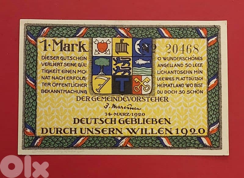 Germany Holnis 1920 1 Mark old vantage emergency banknote