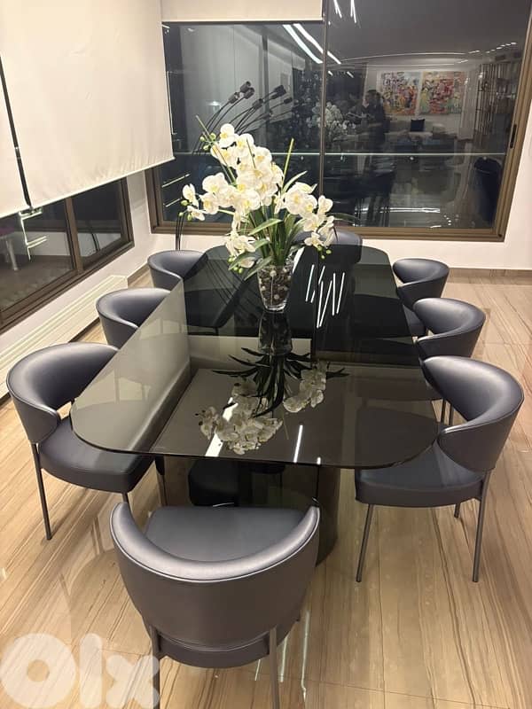 complete dining table and 8 chairs (2armchairs) 2 showcases