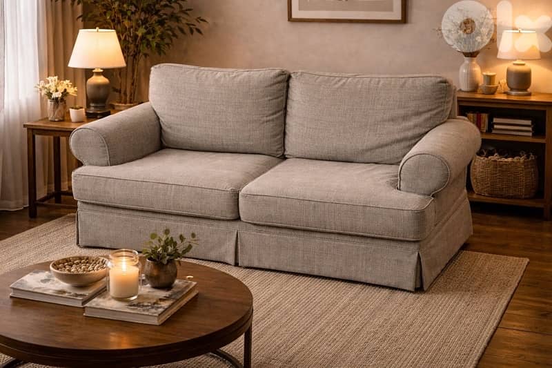 Grayish/ Beige Fabric Sofa – Excellent Condition (Custom Made)