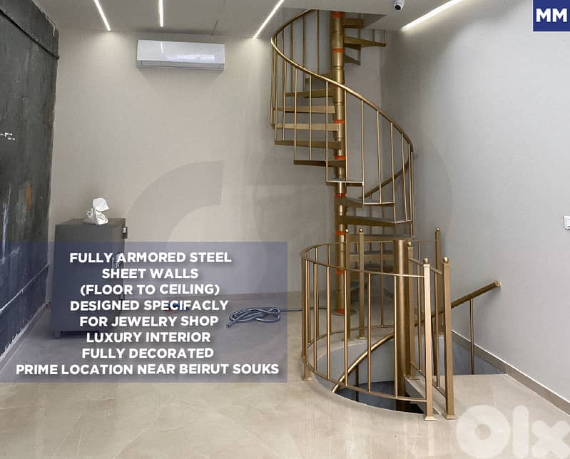 The shop is fully designed and decorated specifically for a jewelry store, with all walls armed with thick steel sheets from floor to ceiling for maximum protection.