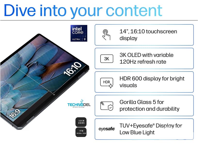 Display: 14-inch 2.8K (2880 x 1800) OLED Touchscreen, 120Hz, 500 nits HDR, 100% DCI-P3, Gorilla Glass