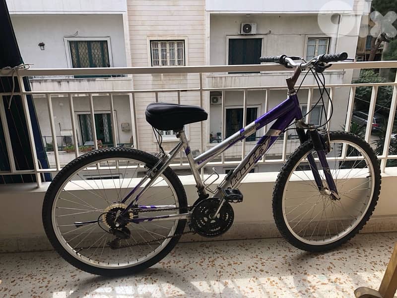for more info text me mountain bicycle purple and silver