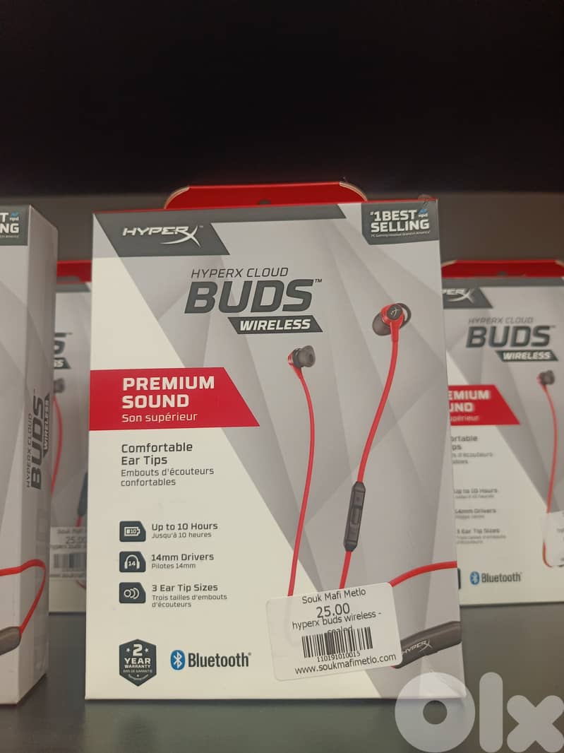 سماعات HyperX Buds اللاسلكية بتقنية Bluetooth – صوت قوي ومريح مناسبة للموسيقى، المكالمات، والألعاب .