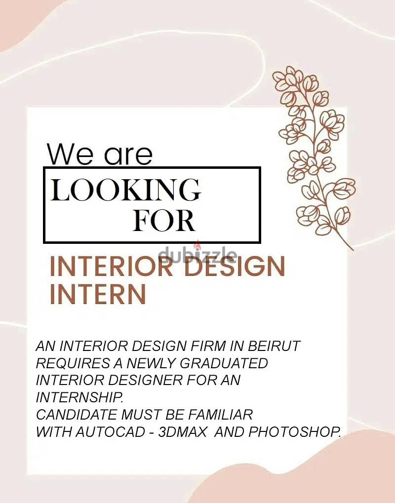 An interior design firm in Beirut requires a newly graduated interior designer for an internship.