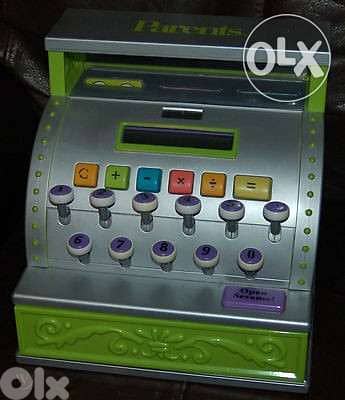 kids toy vintage cash register/calculator by parents very realistic drawer comes out with a ringing bell works on solar energy still in very good condition