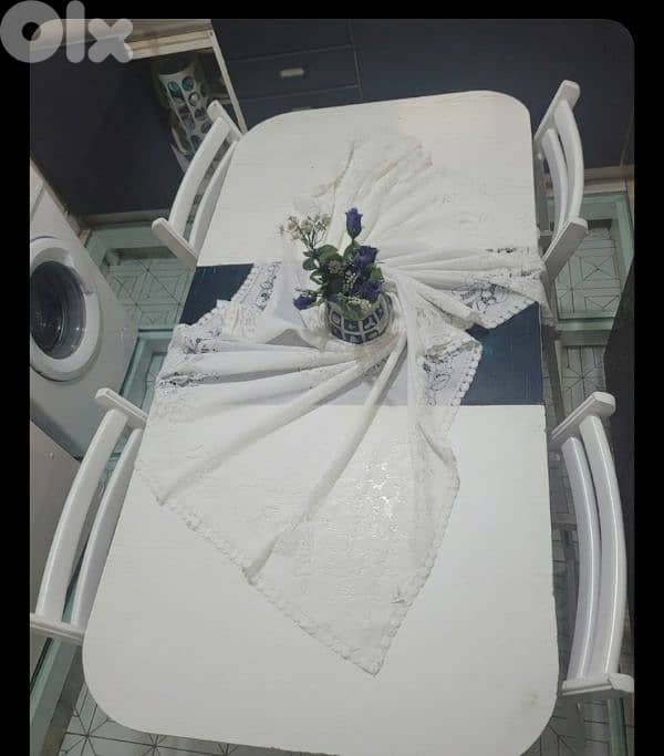 4 Matching Chairs: White wooden folding chairs for easy storage.