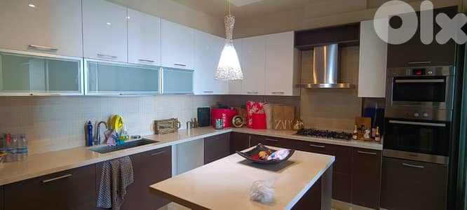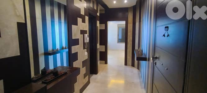 A Decorated Apartment for sale in Kfarhbab, partly furnished with open view, size 185 sqm, consists of reception, dining room, kitchen, 3 bedrooms(1 master), 3 bathrooms, and 2 underground parking spots, and 1 storage room.