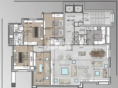It is a 223 square meter consisting of two receptions, open to a dining room, closed kitchen, three master bedrooms with en-suite bathrooms, guest wc and a maid's room with its own bathroom. It is the sole apartment on the floor ensuring more privacy and security.