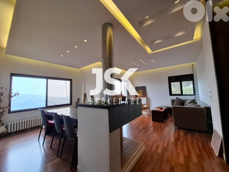 Cozy 2-bedroom furnished apartment located is available for rent in Shayle. It consists of reception, living room, dining room, TV room, built-in Kitchen appliances, Built in Wardrobes, 2 bedrooms, and 2 bathrooms. It benefits from a balcony, chimney with lovely mountain view and 1 parking space.