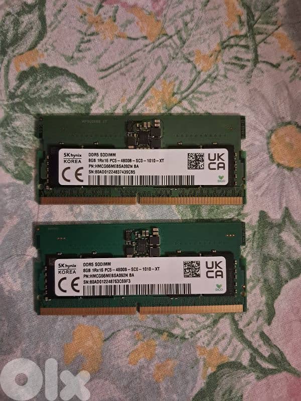2 sticks of 8GB SK Hynix Laptop Ram. Used for 2 months then upgraded laptop. Both for 170$ DDR5-4800 SODIMM