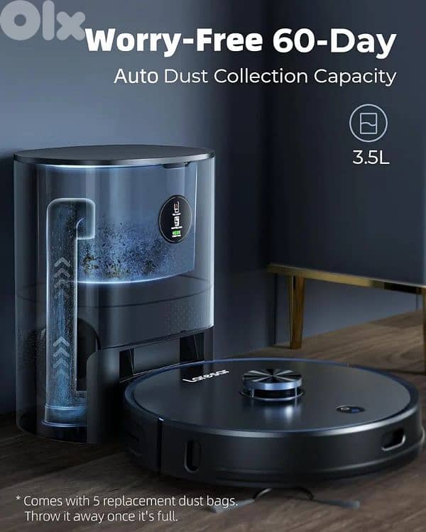 Laresar Robot Vacuum and Mop Combo, 3 in 1 Robotic Vacuum with 3.5L Self Emptying Station, Equipped with Lidar Navigation,Smart App Control, for Pet Hair/Floors/Carpets, L6 Pro, Black