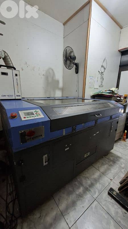 used laser cut machine. perfectly functioning. new power supply. new chiller 5000. new air compressor